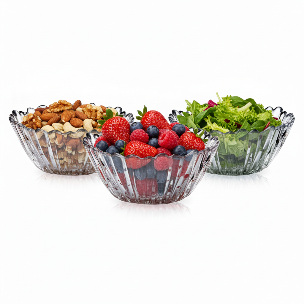 - Sæt med 3: Denne pakke indeholder 3 skåle, så du kan tage højde for små forsamlinger eller nyde flere portioner uden behov for hyppig genopfyldning.