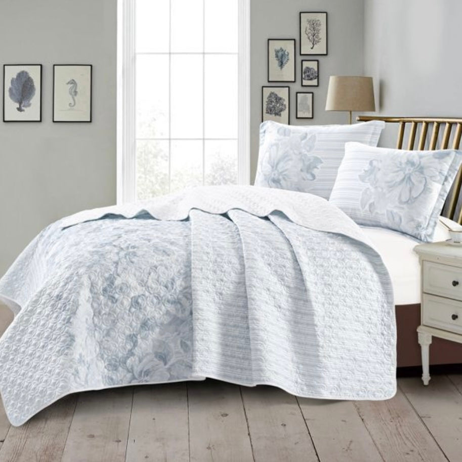 Cinar Tulin Sengetæppe Sæt Hvid/Lyseblå 3 Dele 240x260 cm