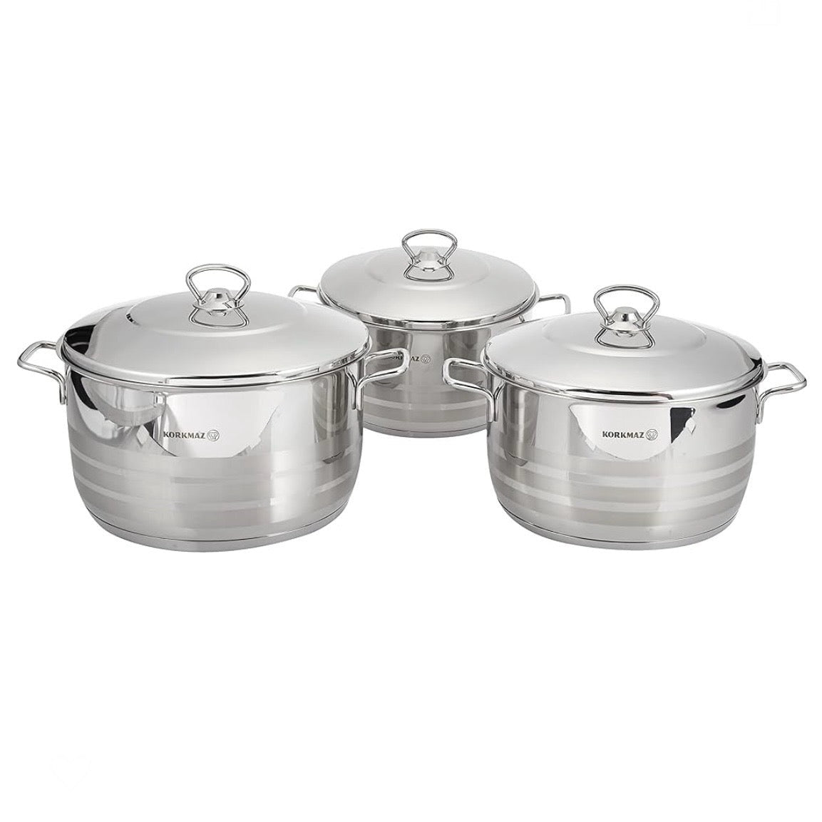 Dette eksklusive 6-dels grydesæt fra Korkmaz er skabt til både hverdagens og festens kulinariske udfoldelser. Sættet består af tre gryder, alle er fremstillet i højkvalitets 18/10 rustfrit stål med en poleret, glansfuld overflade, der forbliver smuk selv ved daglig brug.
