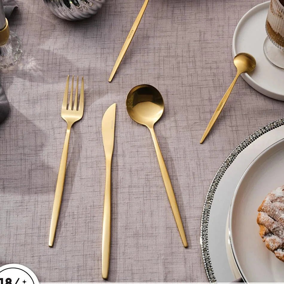Med Karaca Orion Mat Gold får du ikke bare et bestiksæt – du får et statement-piece, der løfter enhver borddækning med elegance, funktionalitet og tidløs skønhed.