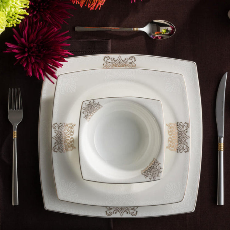 Karaca Fine Bone New Lotus Gold Spisestel til 4 Personer 17 Dele