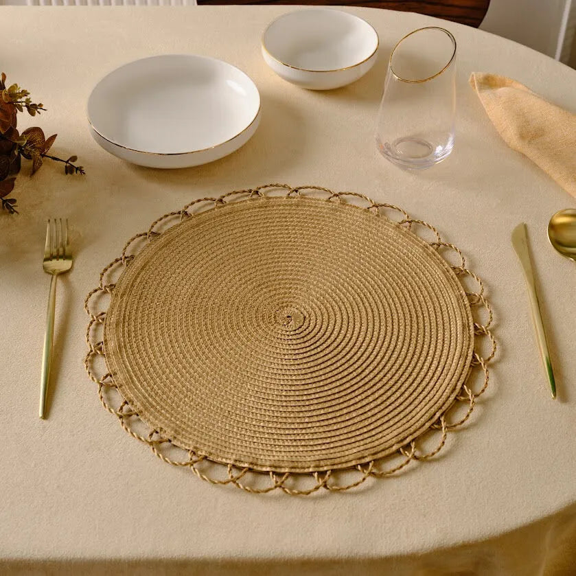 Karaca Katy 2-delt dækkeserviet i naturligt design er et stilfuldt og funktionelt valg til borddækningen. Dækkeservietterne har et rundt og flettet udtryk, som tilfører bordet en varm, naturlig og moderne atmosfære. Det enkle naturlook gør dem lette at kombinere med både klassisk og moderne service.