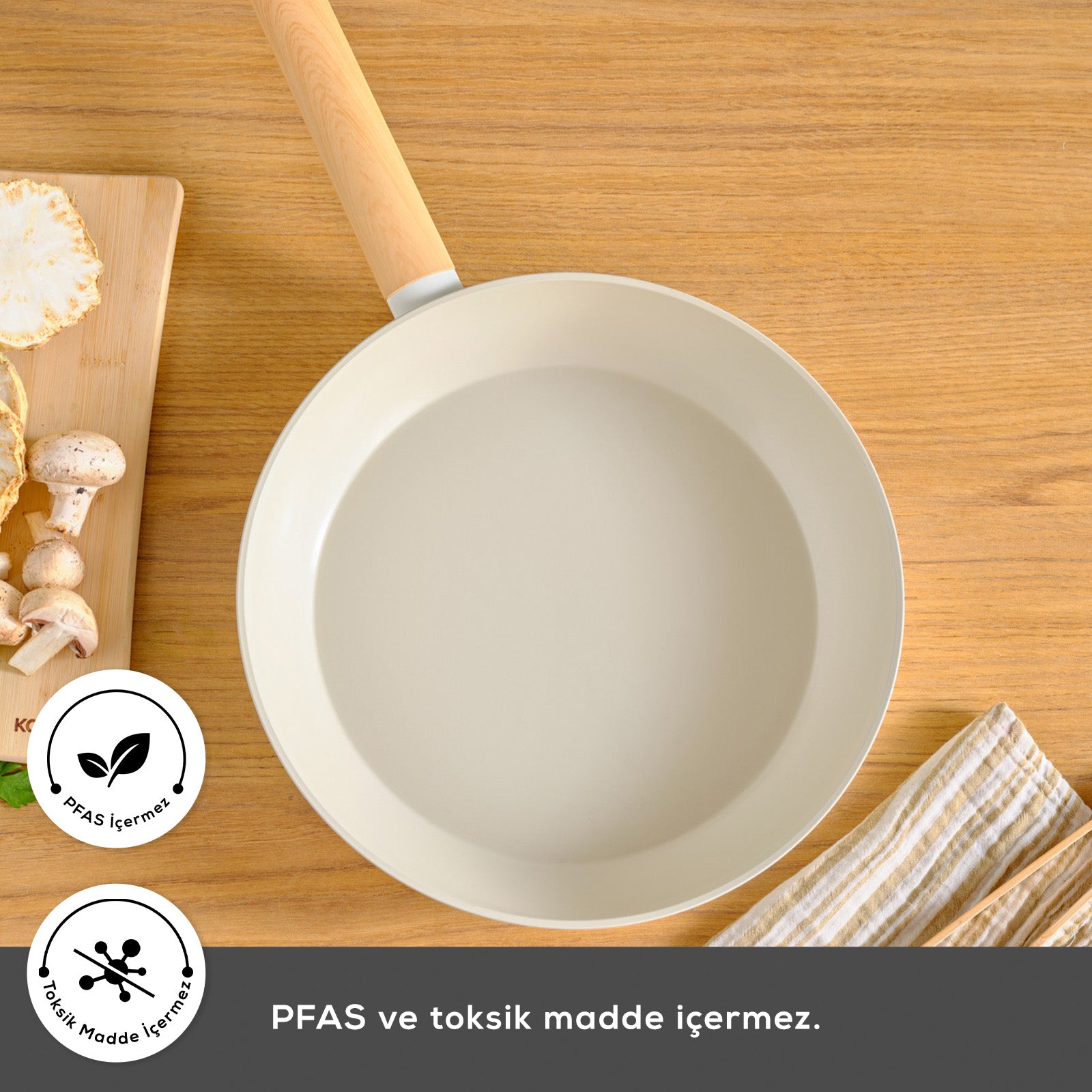 Den kraftige induktionsbund fordeler varmen jævnt og hurtigt, så du får perfekt stegning hver gang – uanset om du tilbereder grøntsager, kød eller fisk.