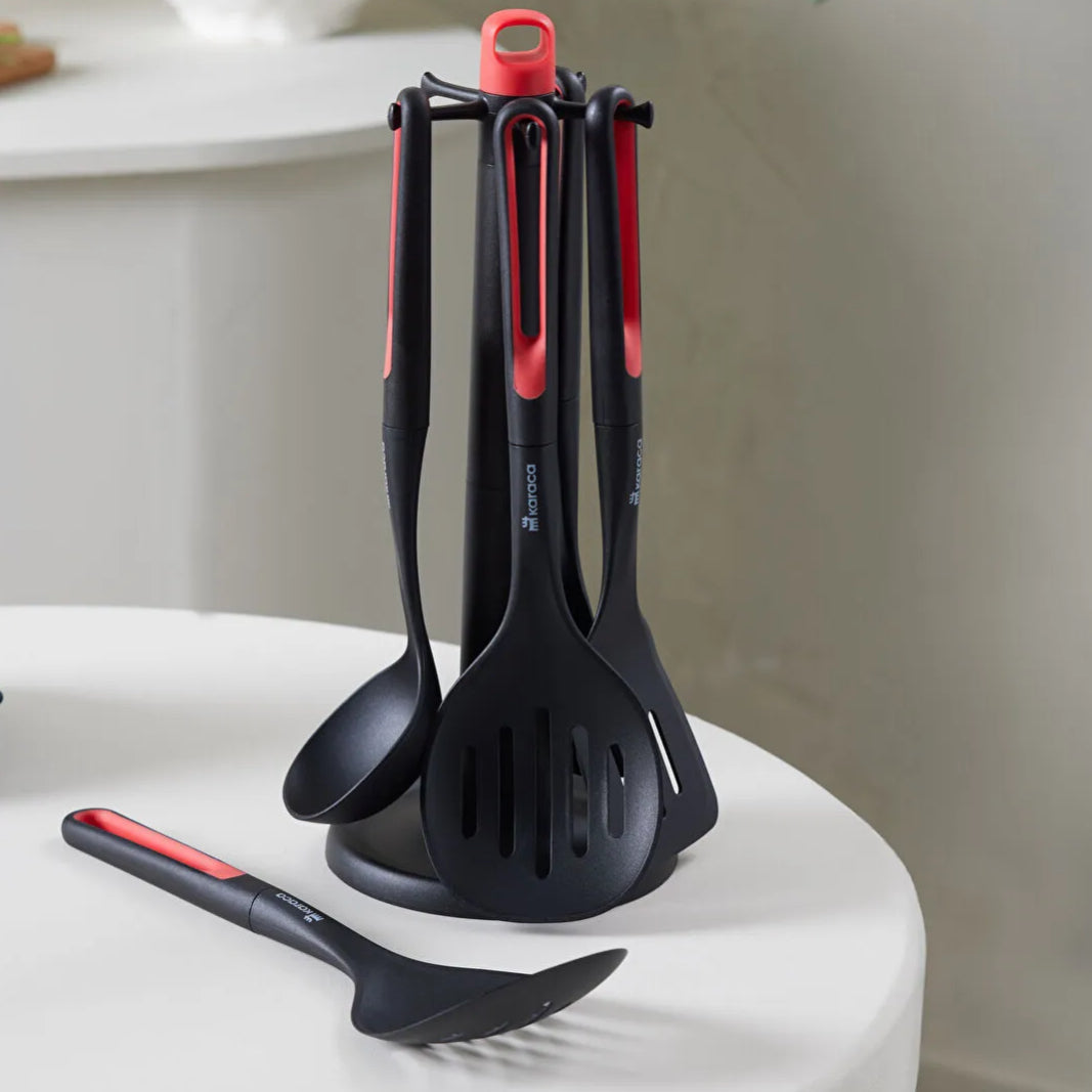 Karaca Marco Rød 6-delt Serveringssæt med Stander