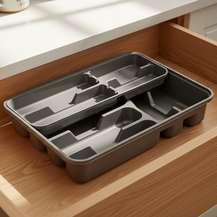 Dobbelt Bestikbakke i Grå – Rummelig og Praktisk Opbevaring
