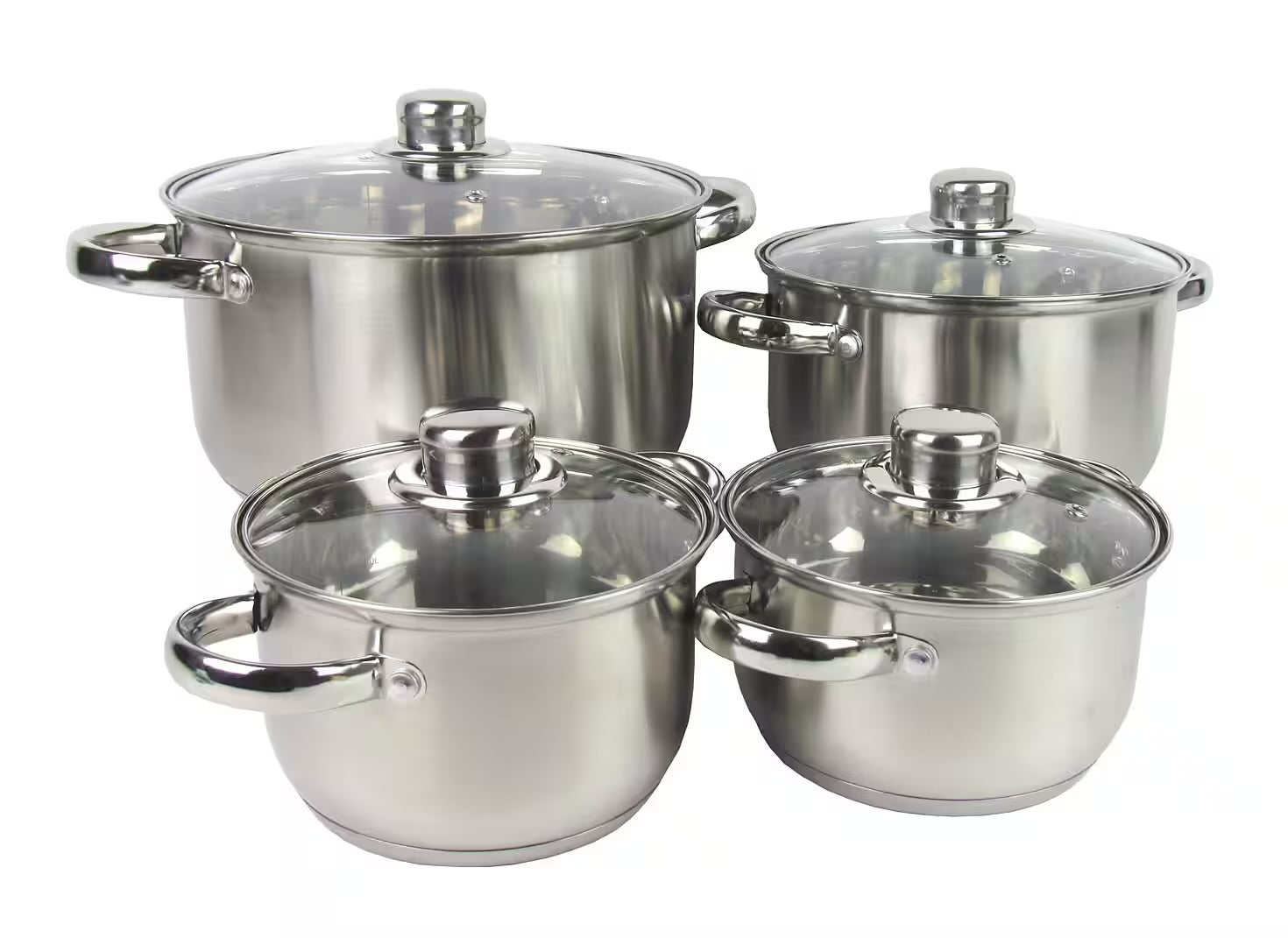Michelino Berlin Grydesæt – 8 Dele i Satineret Rustfrit Stål