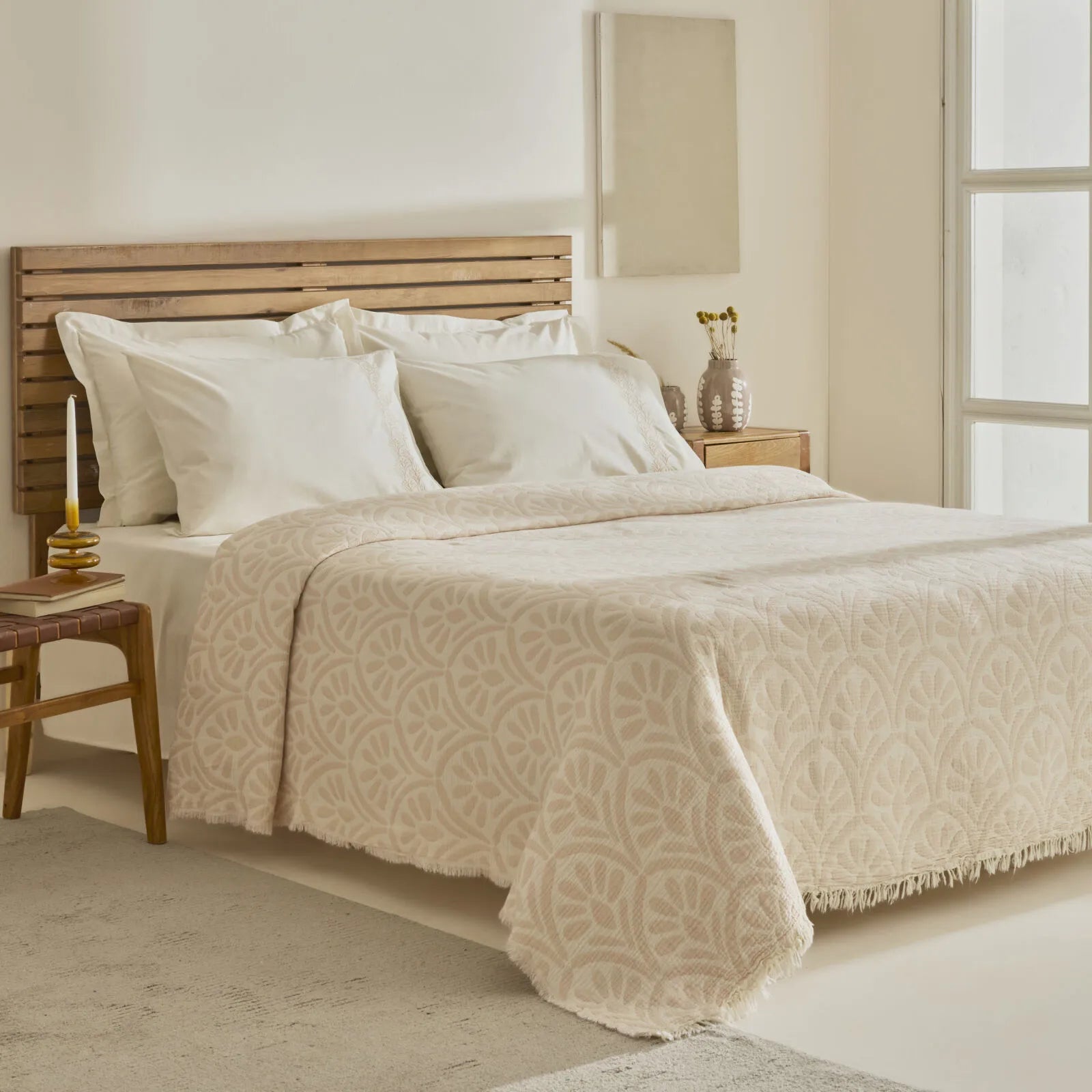 Skab en romantisk, blød og elegant atmosfære i soveværelset med Karaca Home Shailyn broderet musselin sengetæppesæt. Kombinationen af naturlige materialer og fint broderet musselin giver sættet et luftigt, eksklusivt og tidløst udtryk, der harmonerer med både moderne og klassiske indretningsstile.