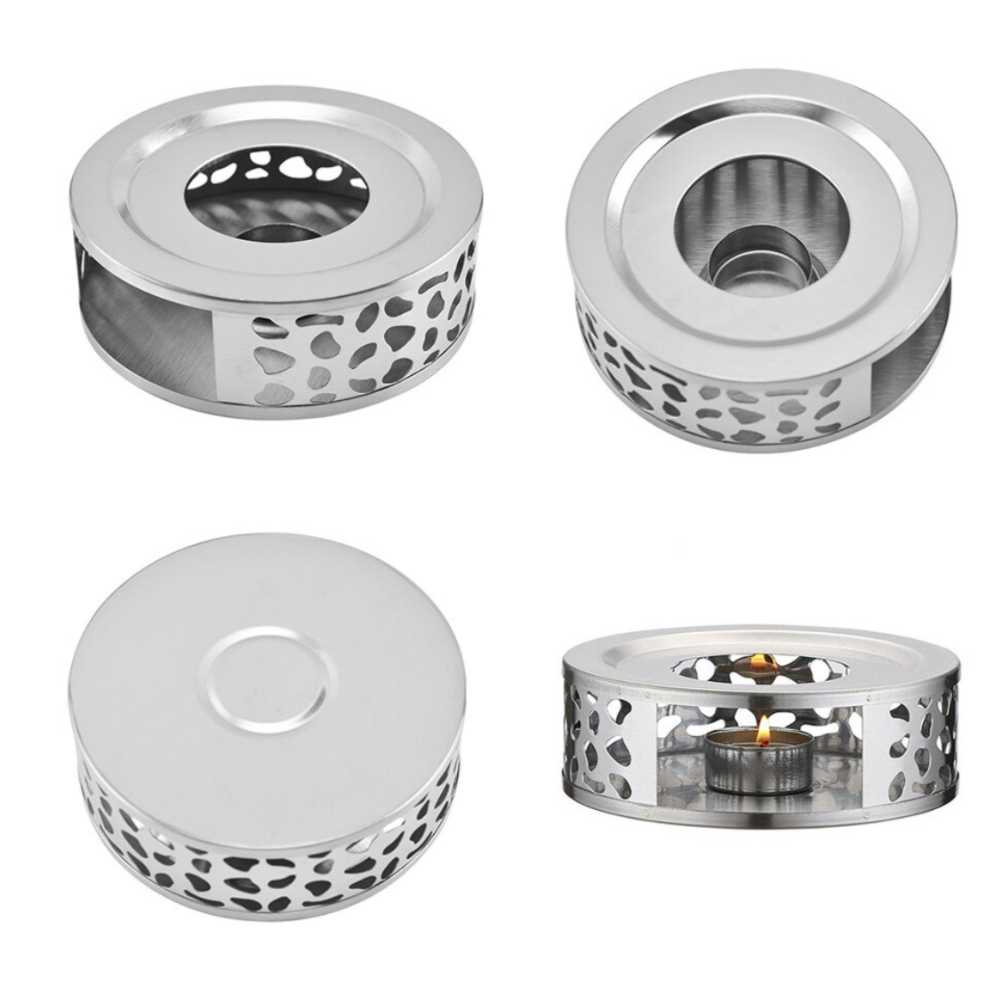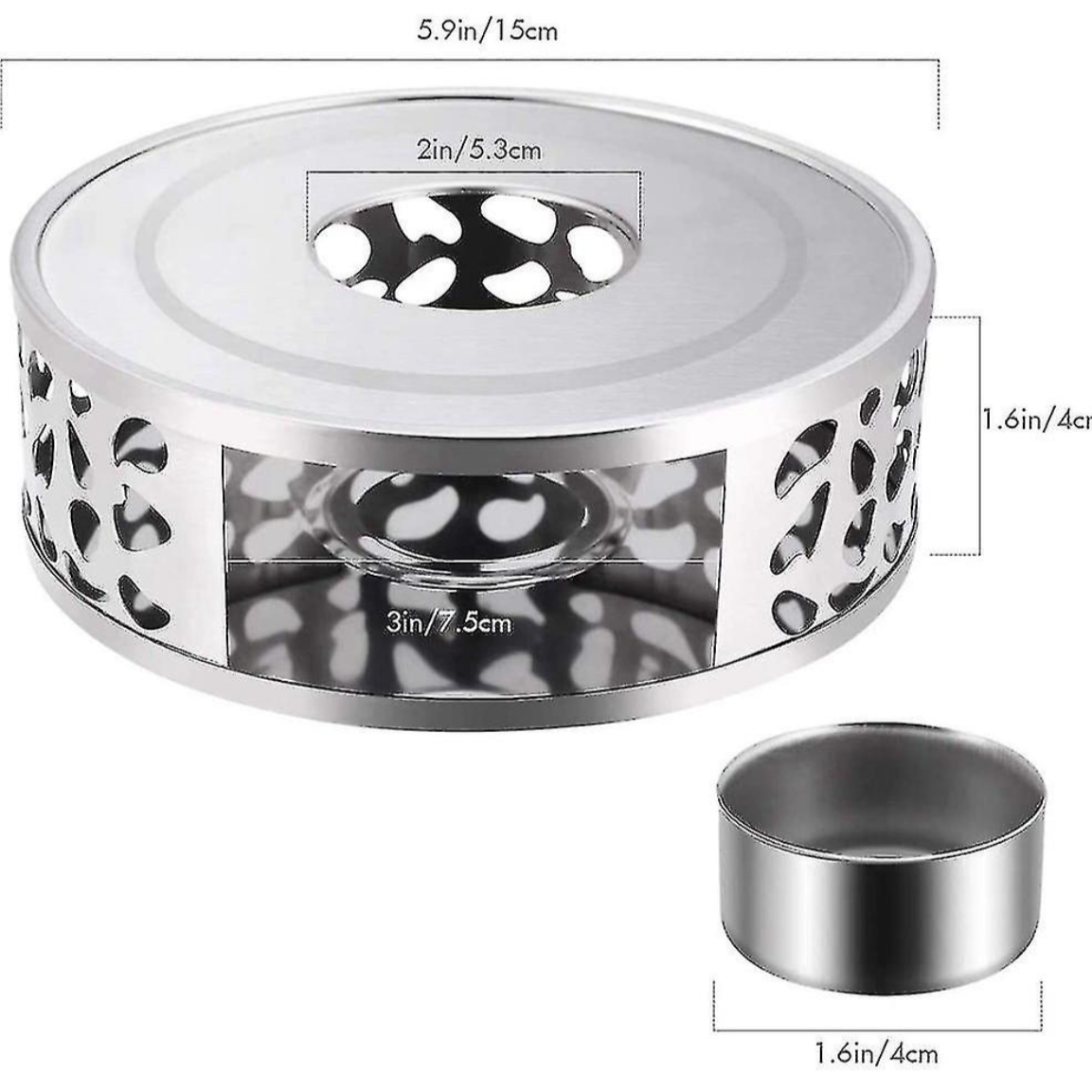Tekandevarmer til Fyrfadslys i Rustfrit Stål Sølv 15 cm